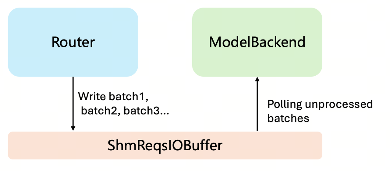 And the ModelBackend continuously polls the ShmReqsIOBuffer, and as soon as a batch is available, it is processed immediately. It achieves complete asynchronization between the Router and the inference process.